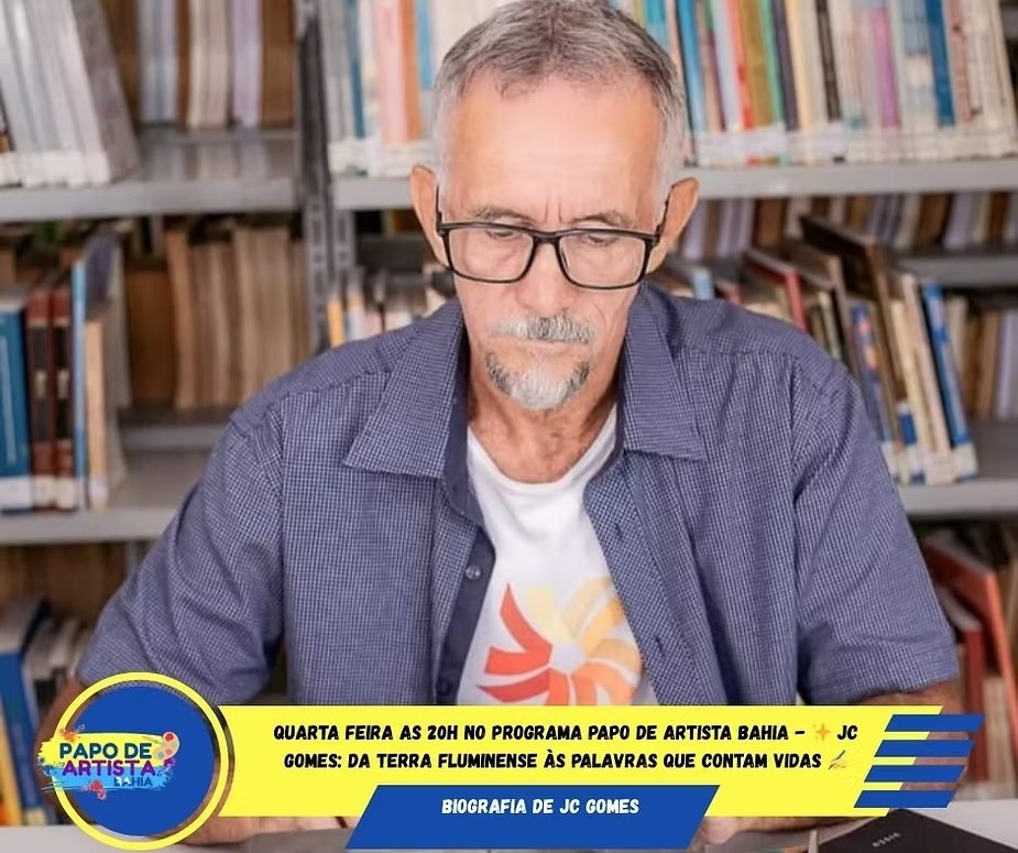 Quarta Feira as 20h no Programa Papo de Artista Bahia - ✨ JC Gomes: Da Terra Fluminense às Palavras que Contam Vidas ✍️📖