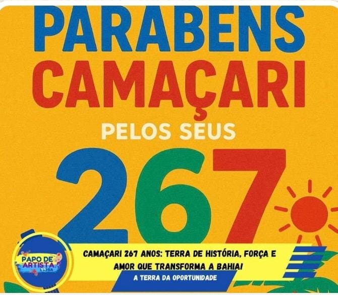 Parabéns, Camaçari! Que cada canto da cidade continue sendo inspiração, orgulho e esperança para o Brasil e para o mundo.
