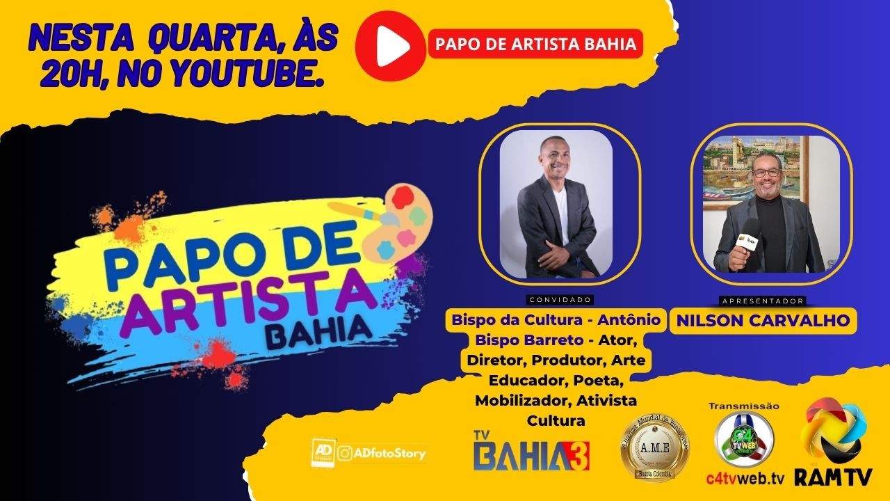 Nesta quarta-feira, no programa Papo de Artista Bahia, tive a honra de entrevistar Mestre Antônio Bispo Barreto, o verdadeiro Bispo da Cultura, cuja trajetória inspira e mobiliza a Bahia e o Brasil — chegando a mais de 116 países pela C4TVWEM e TVBahia3.