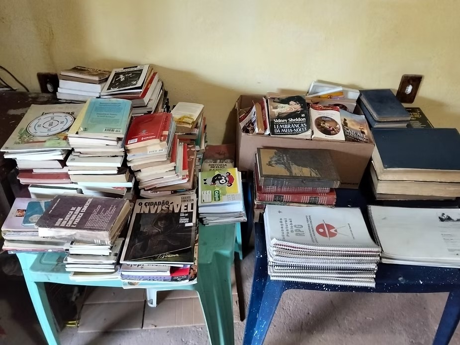 Mas hoje muitos deles ainda estão empilhados, esperando estantes para cumprir sua missão: transformar vidas através da leitura.