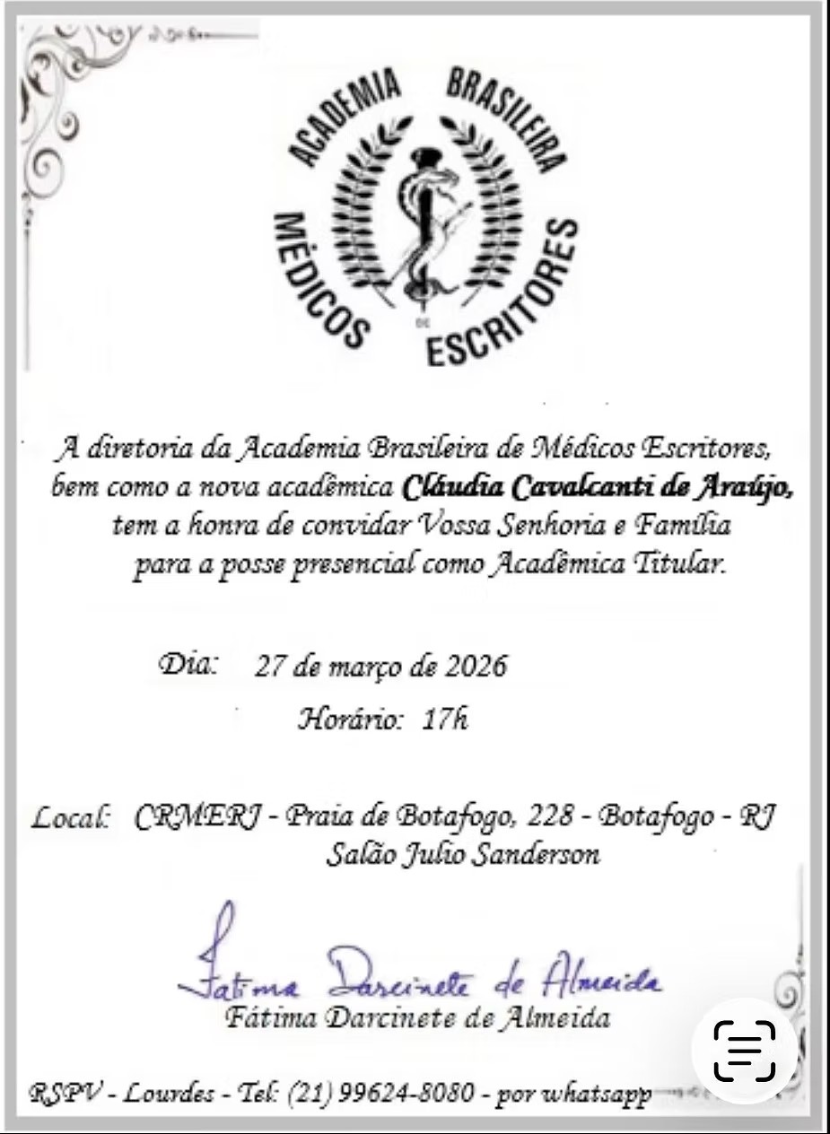 Em um momento que transcende títulos e se transforma em legado, a Dra. Cláudia Cavalcante de Araújo é oficialmente conduzida à Academia Brasileira de Médicos Escritores — um feito que não celebra apenas uma carreira, mas uma vida inteira dedicada ao conhecimento, à sensibilidade e ao compromisso com o ser humano.